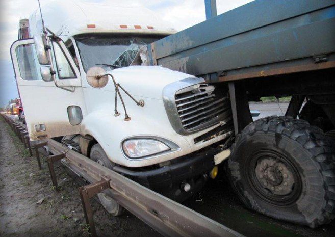 Под Пермью дальнобойщик выжил в пробитой в ДТП кабине