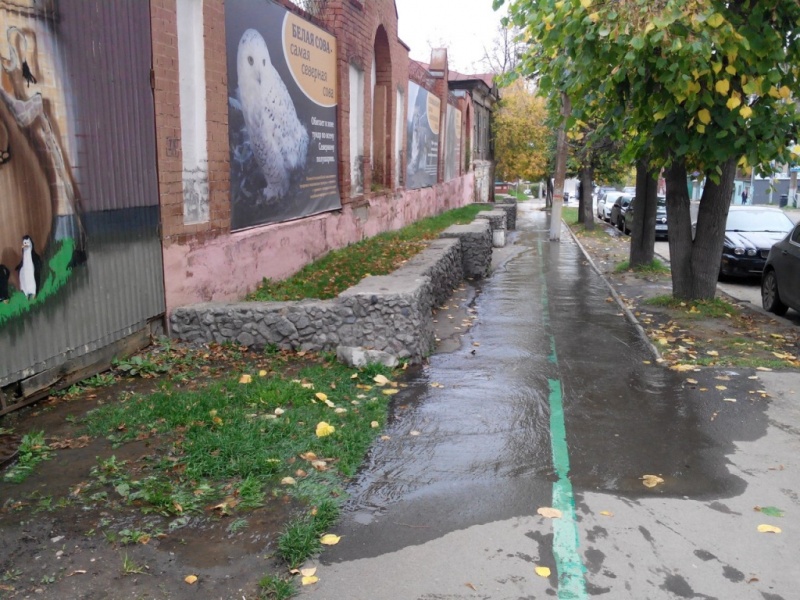 Утром 24 сентября тротуар и проезжую часть на улице Монастырской в районе пермского зоопарка затопило. Очевидцы сообщают о неприятном запахе канализации на этом участке.