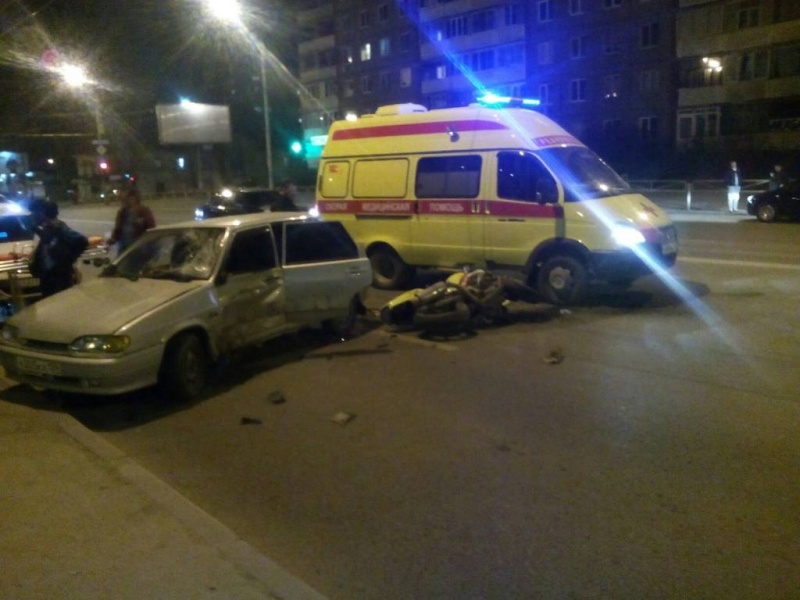 Как сообщают очевидцы, около часа ночи автомобиль ВАЗ-2114, нарушая правила, разворачивался через две сплошные полосы. В это время по проспекту Парковый ехал байкер c пассажиром. Не успев среагировать на маневр легковушки, он врезался в авто.