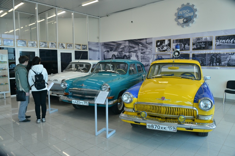 Горбатый «Запорожец», срисованный с Opel Kadett «Москвич-401», классика советского автопрома — «Москвич-412» экспортной серии, 21-я милицейская «Волга» (точь-в-точь на такой же увозили Буншу в фильме «Иван Васильевич меняет профессию»), элегантные «копейки» и «тройки», представительные «Победы» и «Чайки», а также множество других раритетных авто выставлены в пермском автомобильном музее «Ретро-Гараж».