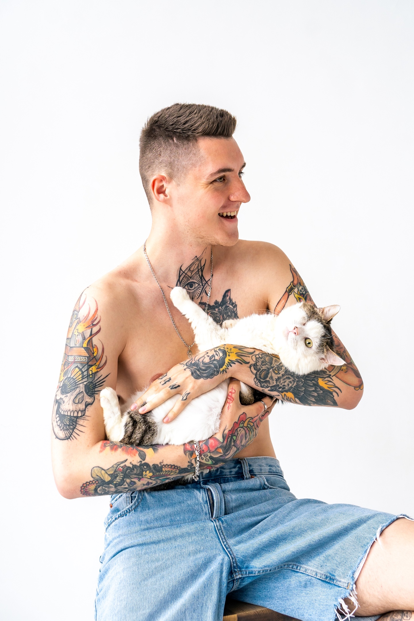 Пермский приют «Матроскин» провел фотосессию, в которой приняли участие люди с татуировками и особенные коты, не похожие на других, потерявшие глаза, уши или хвост. Так организаторы съемок хотели показать, что любви достойны все животные.