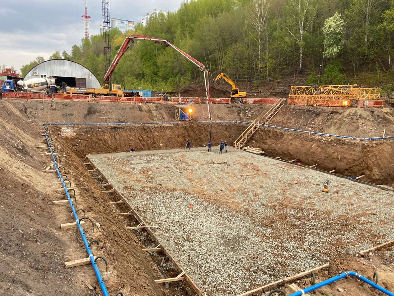 «Сейчас на объекте параллельно выполняются земляные работы, водопонижение и подготовка основания под фундамент. На части площади уже уложен щебень под бетонирование, далее будет выполняться гидроизоляция, затем и сам фундамент. Подрядчик работает сменами без выходных», сообщил губернатор в своем ТГ-канале.