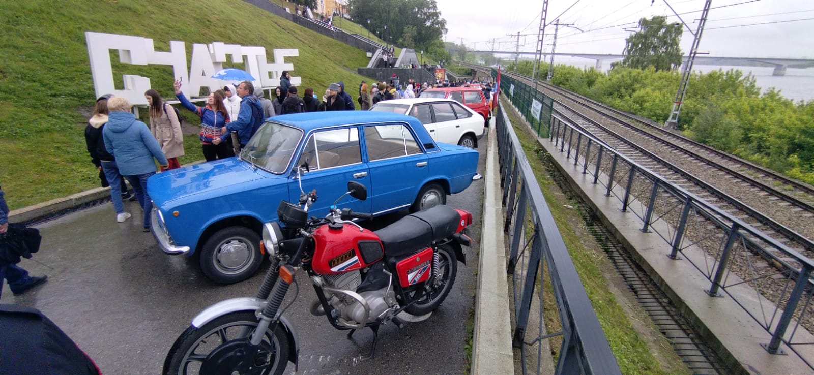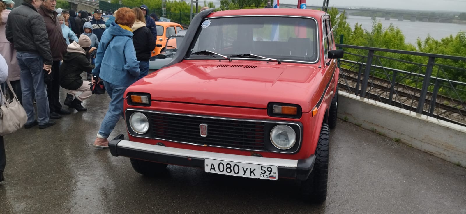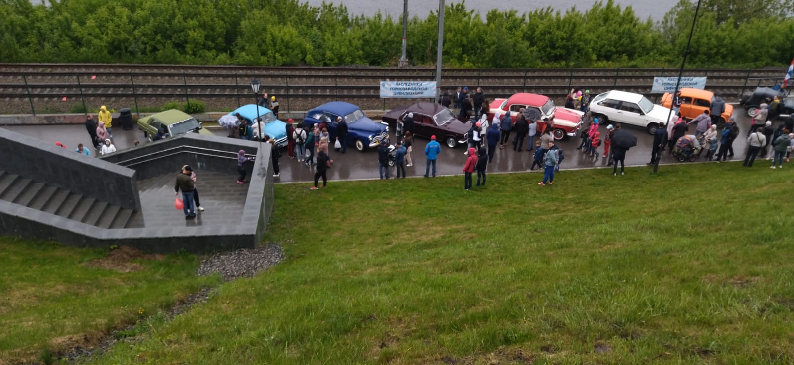 На спуске к набережной от Картинной галереи проходит выставка ретро-автомобилей. Даже погода не отпугнула сотни любителей авто, которые с удовольствием осматривают и фотографируют раритеты на колесах.