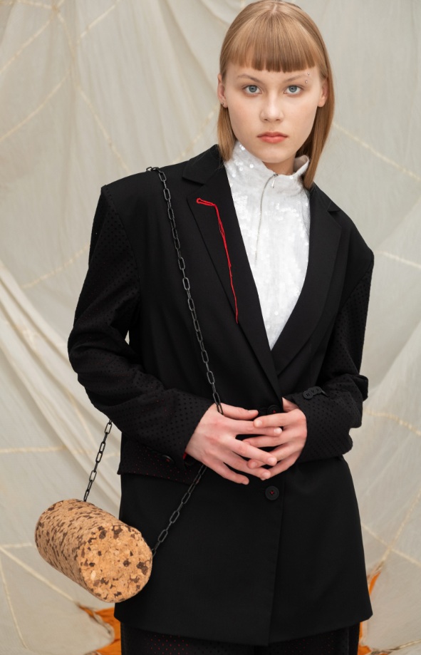Подобные сочетания собраны в каждой вещи. При этом создание некоторых длилось ни один год. Например, пробковое покрытие дизайнер приобрела восемь лет назад с мыслью создать что-то необычное. Но идея сумки-пробки оформилась только недавно – модель попала в коллекцию.