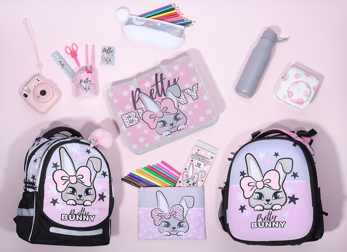 Обратите внимание на новые коллекции: для девочек – “Зайчик”, для мальчиков – “Соккер”. Все будет в одном стиле – рюкзак, папка для тетрадей, карандаши и фломастеры.