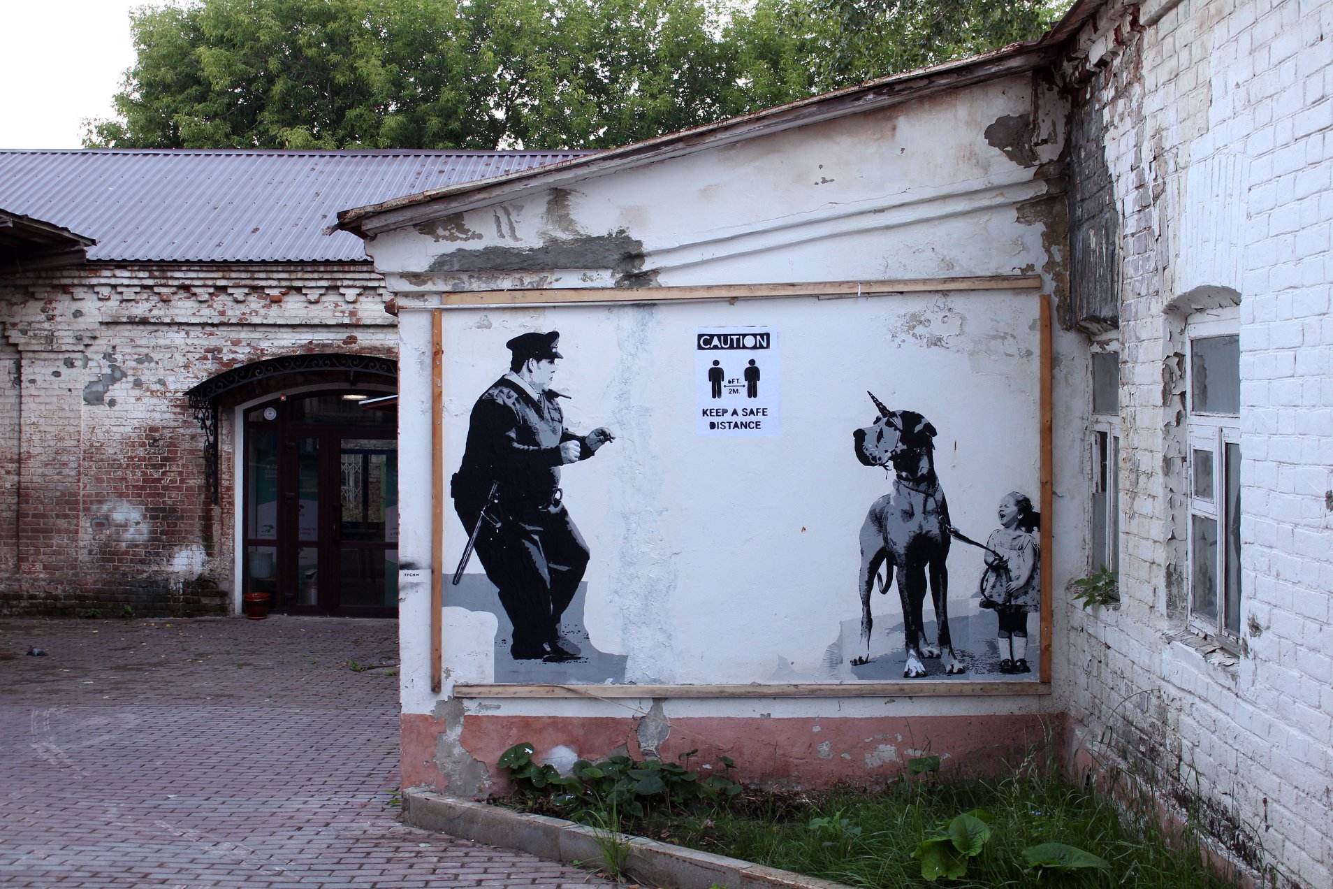 Например, в августе 2020-го года он создал рисунок Keep a safe distance, в конце 2019-го разместил на электрическом щитке.
