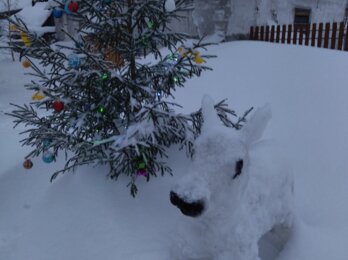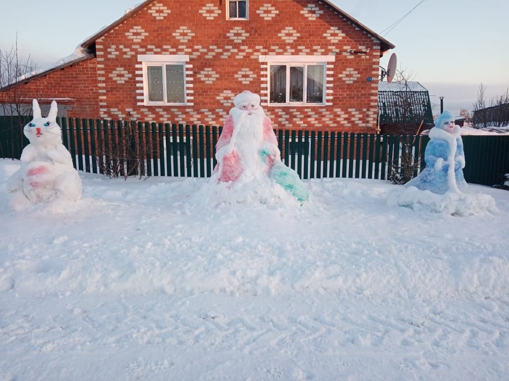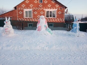 В Чернушинском округе местная жительница Гадина Дулесова прославилась на всю округу своими прекрасными снежными скульптурами. Она слепила возле своего дома в селе Павловка сразу несколько фигур – Деда Мороза, Снегурочку и символ Нового года – кролика.