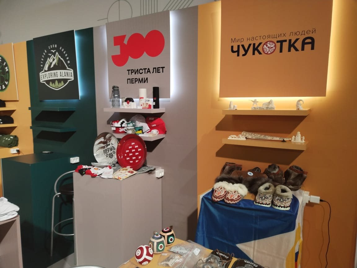 Представители Чукотки привезли меховые тапочки, а Башкортостана - нарядные тюбетейки. На ярмарке представлено и большое количество пермских сувениров: одежда с логотипом "Счастье не за горами", милые медвежата из разных материалов, тарелки, кружки с официальной символикой "Пермь-300", сублимированные сладости и другие.