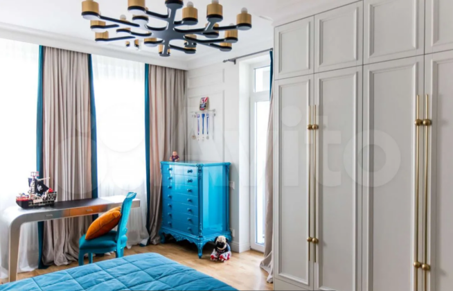 «ЖК «Виктория». Современный центр города. Свежий ремонт от дизайнера, все остается как на фото, в идеальном состоянии. Дорогая мебель, техника, материалы. Отделочные работы выполнялись по проекту. Рекуперация воздуха. Удобная планировка с тремя спальнями, игровой, гостевой. Продуманные места для хранения и гардеробные. Три санузла, постирочная. Две лоджии», — пишет хозяин.