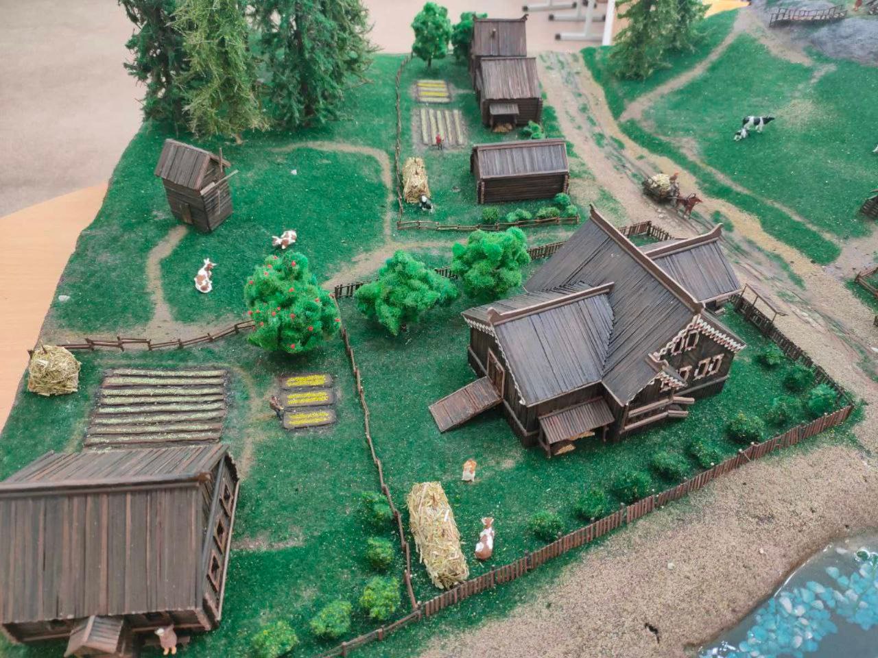 Деревню назвали Родвуж, что значит «родня». Площадь макета не Ольшая – всего 1,2 на 1,2 метра. Изготовили макет студенты и преподаватели Пермского строительного колледжа. Модно увидеть улицы деревни, традиционные дома коми-пермяков, мельницу, церковь. В планах – добавить к макету подсветку.