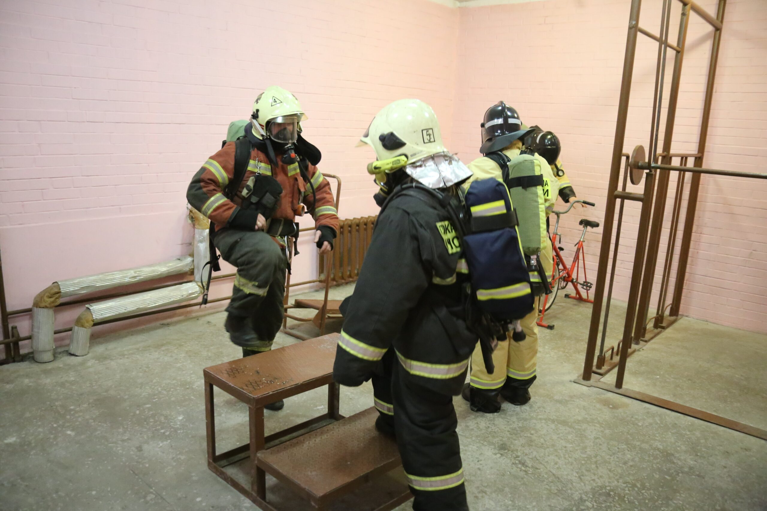 Они прошли узкий лабиринт теплодымокамеры, спасли человека и потушили условный пожар.
