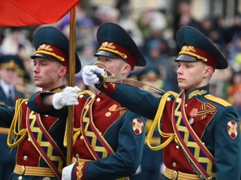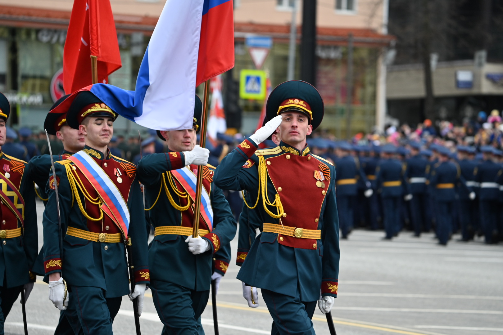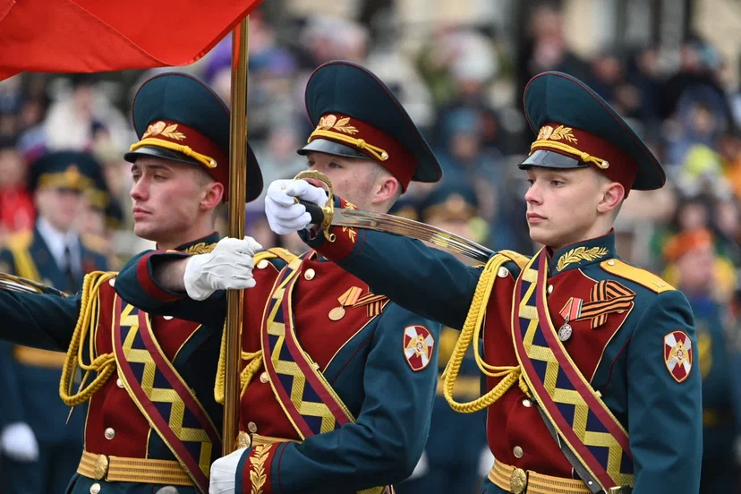 По Октябрьской площади прошли более двух тысяч военнослужащих и 20 парадных расчетов.