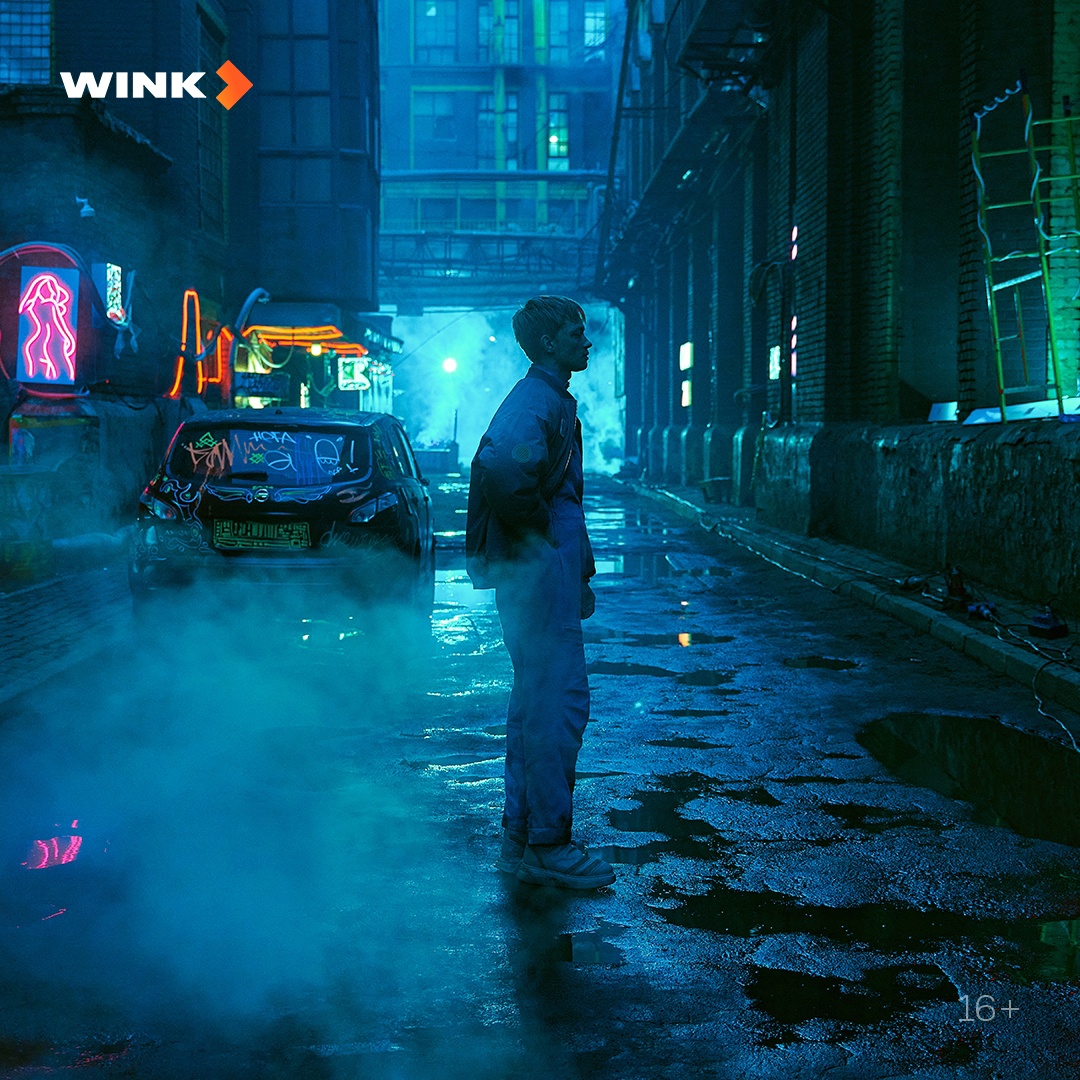 Имя героя Сарапульцева пока не раскрывается, однако на кадрах, опубликованных онлайн-кинотеатром Wink, молодой человек стоит в космическом костюме на фоне неоновых вывесок. Также Владимир висит на плече другого актера в другом опубликованном скрин-шоте.