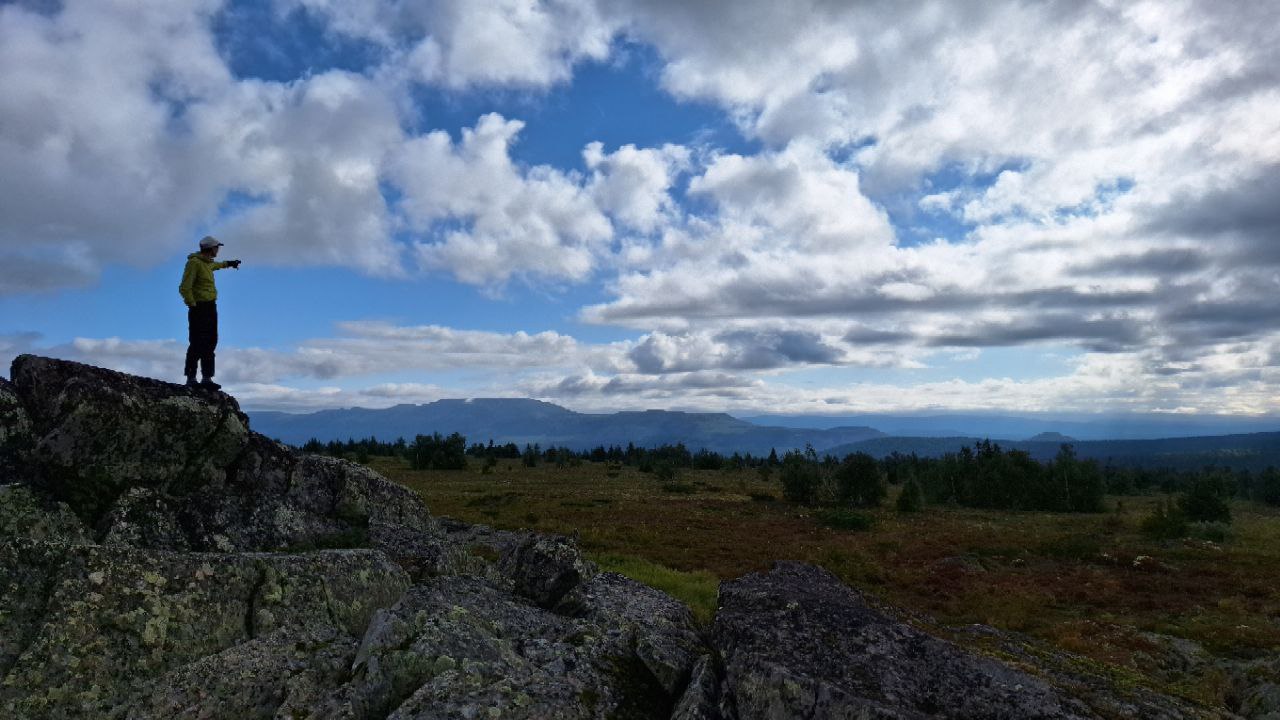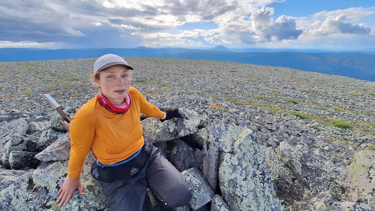 «А мы пошли дальше вдоль горы Холат-Сяхль, прорубаясь по ивняку, и прыгая по камням, пока не догадались подняться выше. Дождь, ветер, все удовольствия Северного Урала. Далее по хребту Поясовый Камень. Очень много останцев разных, иногда, безумных форм. 15 км от Перевела и Подъем на гору Саклаимсори-чахль 1126 м, самую северную точку Пермского края. Границу трёх регионов и водораздел рек Камы, Печоры и Оби. Официально начало нашего маршрута - Большая Пермская тропа-2024 и старт. Мы хотим впервые в истории пройти весь Пермский край с севера на юг, используя лишь собственные ноги».