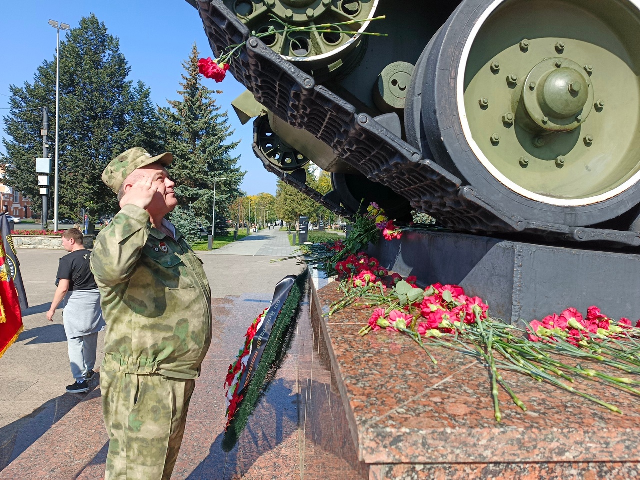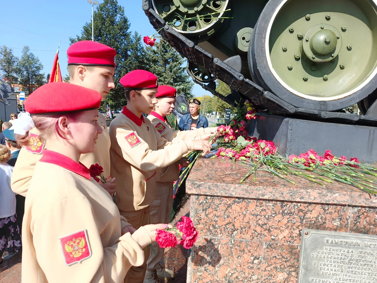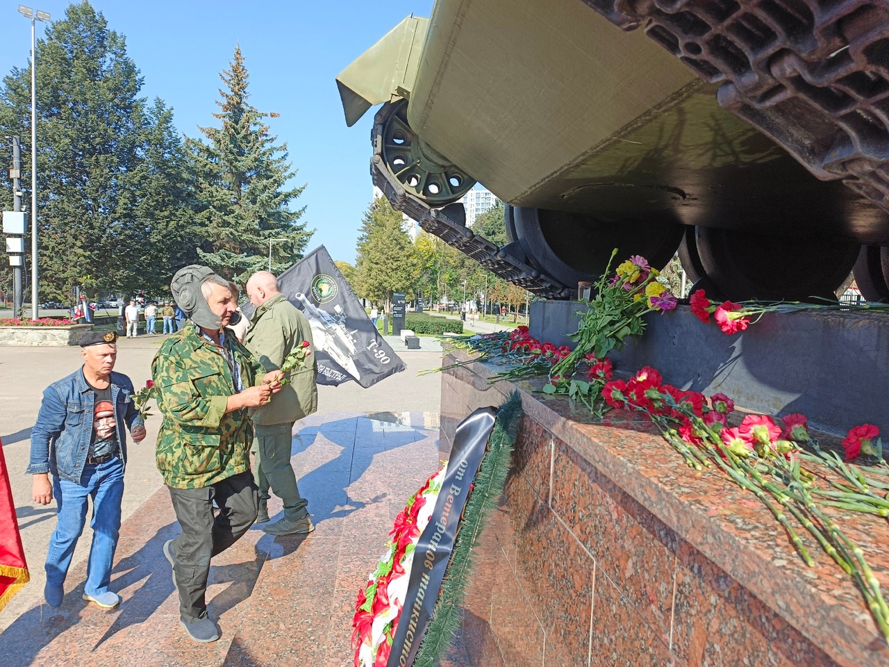 В Доме офицеров дали концерт, а после состоялось возложение цветов к мемориалу Уральскому добровольческому танковому корпусу.