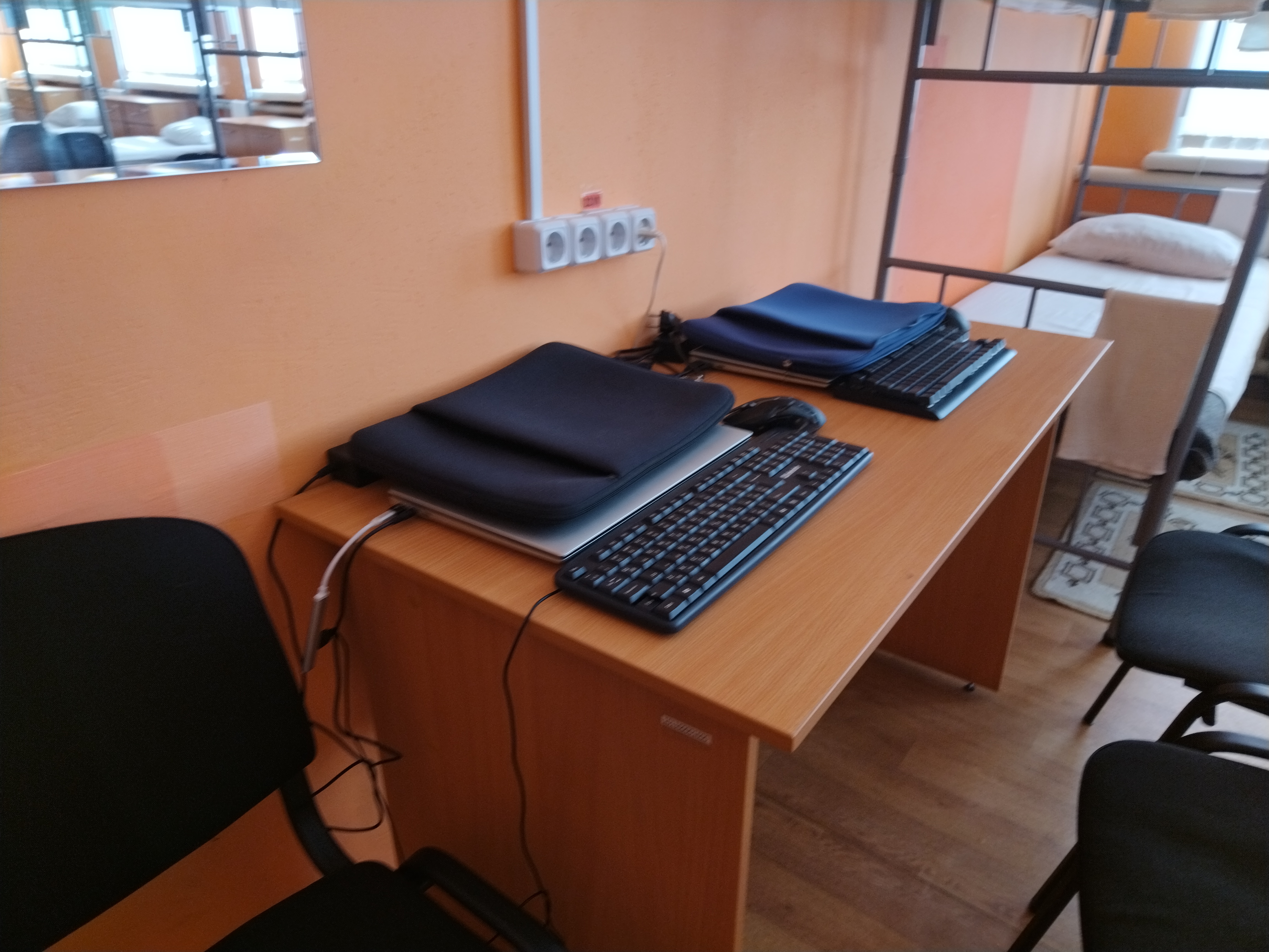 В одной из комнат на столе лежат два ноутбука. На вопрос, казённые ли, получаю отрицательный ответ. Сами заработали и купили.