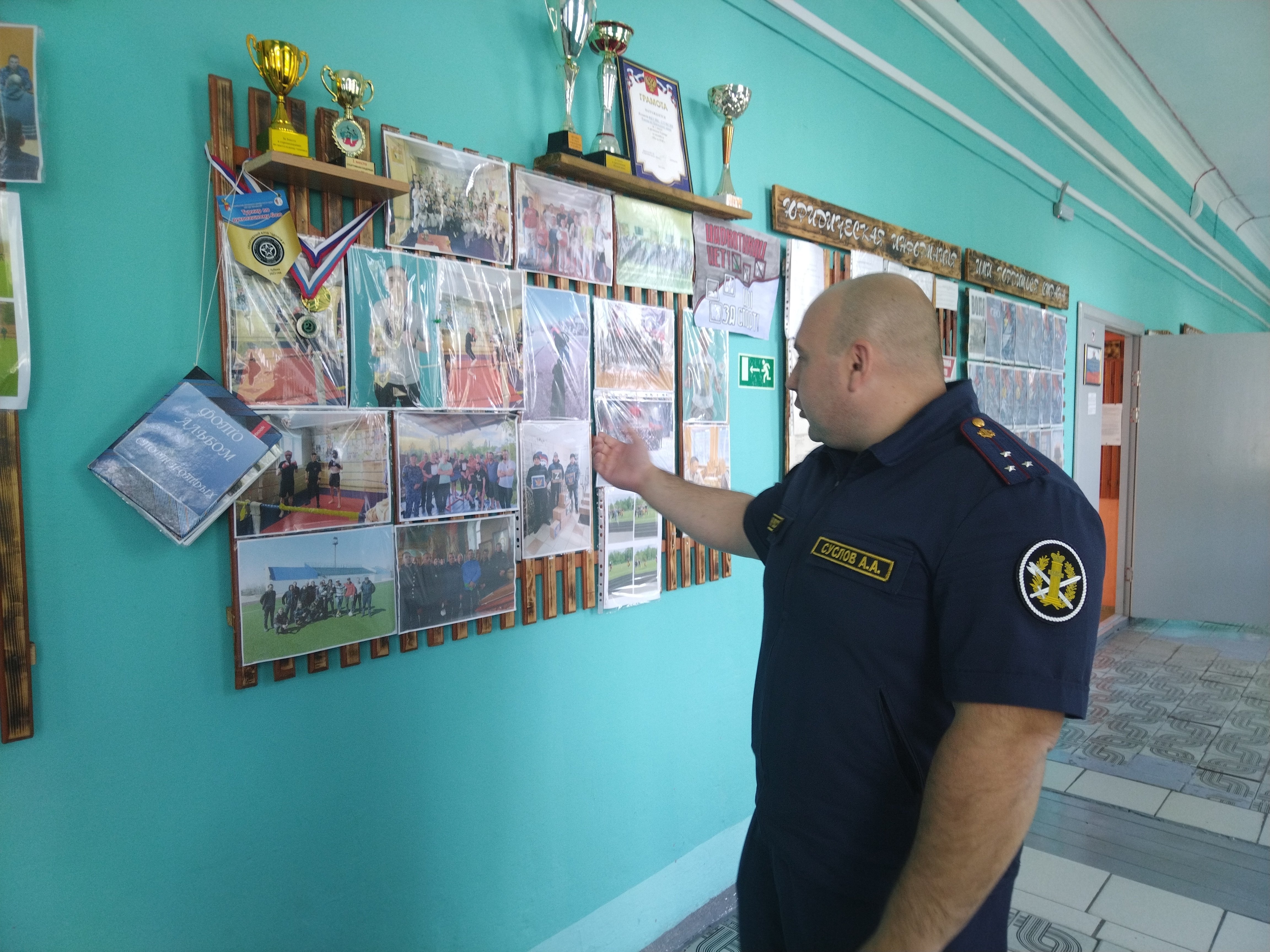 Попрощались с Владиславом, и начальник исправцентра предложил провести небольшую экскурсию. Прошли по широкому коридору бывшей школы. На стенах – стенды с фотографиями той самой общественной жизни. Вот осужденные играют в шахматы на городском турнире, в футбол. Помогают двум приютам для бездомных собак, сколачивают вольеры. Прибирают городские улицы, чистят снег у дома для престарелых в посёлке Северный, смотрят экспозиции губахинского музея.