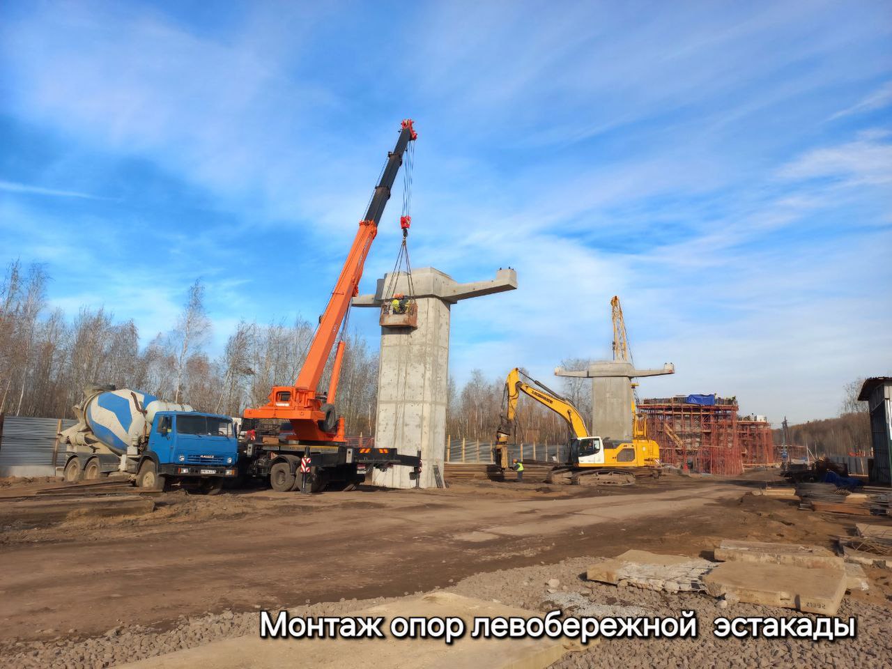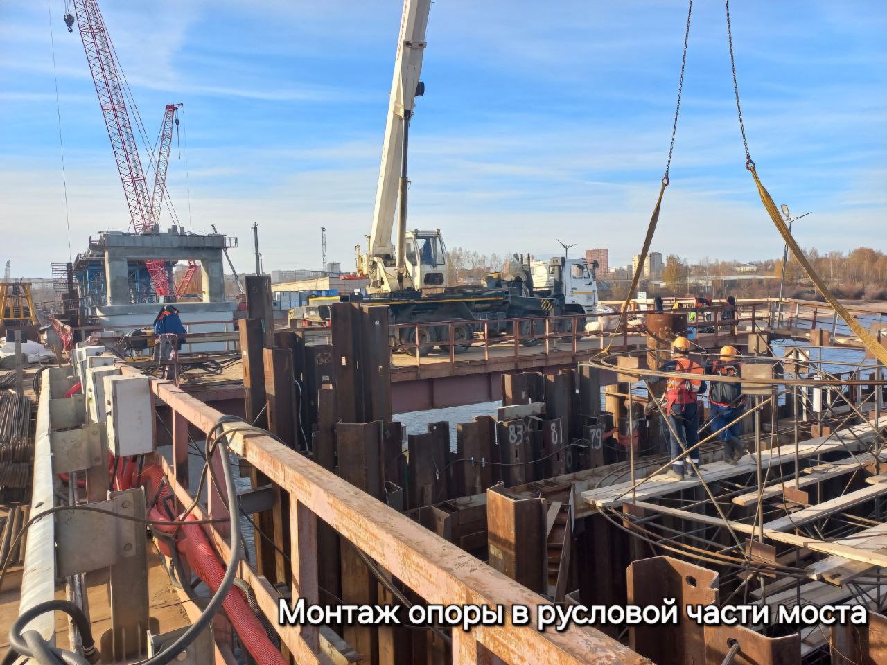 "На эстакадных подходах установили больше половины опор: 29 из 51. Ведем монтаж пролетных строений. В русловой части начали бетонировать опоры: готовы 2, в работе сейчас 4. Всего их будет 13", - пояснили в СвЖД.