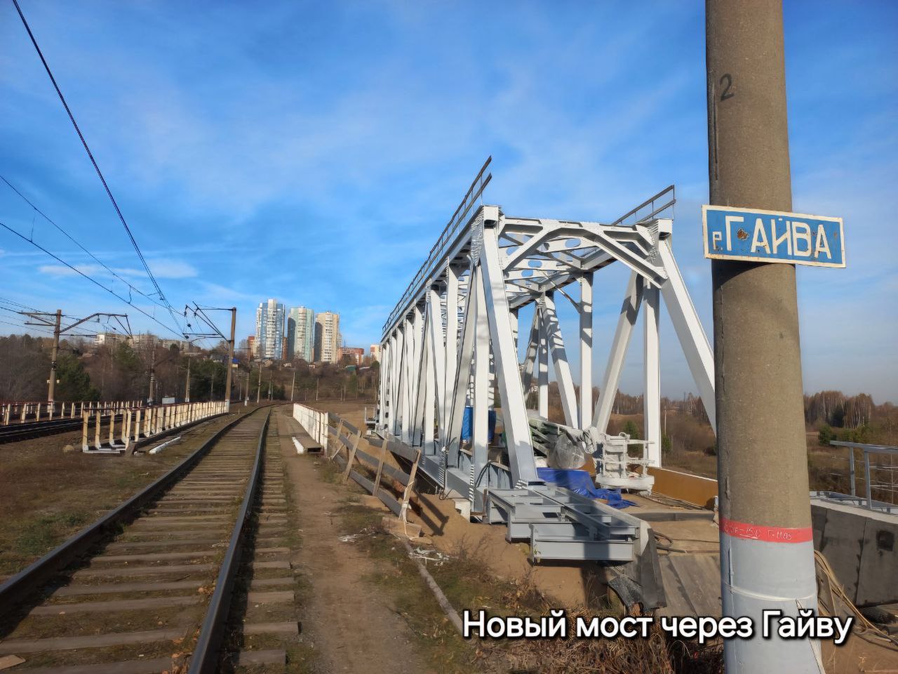 На правом берегу уже возвели ж/д мост через реку Гайву: он станет частью пути, который соединит эстакадный подход моста через Каму со станцией Кабельная. На станции сейчас ведется реконструкция ж/д путей и контактной сети.