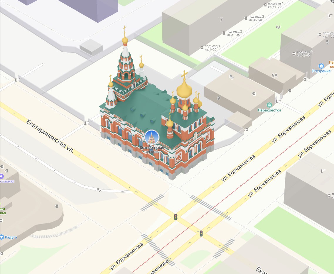 Чтобы увидеть модель в объеме, нужно на карте приблизить эту достопримечательность. Рассмотреть объект можно не только сверху, но и со стороны. В веб-версии Яндекс Карт для этого нужно нажать кнопку «3D», а в мобильном приложении — провести двумя пальцами вверх по экрану телефона. Так же можно вращать 3D-модель в разные стороны.