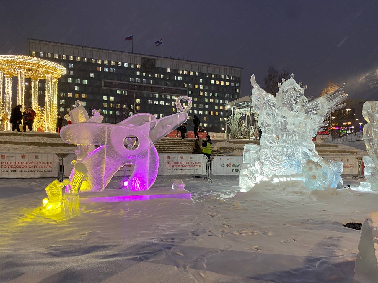В Перми подвели итоги четырёхдневного турнира среди молодых скульпторов. Они создавали на эспланаде фигуры из льда. В соревнованиях приняли участие представители регионов России и Беларуси. Событие стало первым после объявления Перми молодёжной столицей страны на 2025 год.