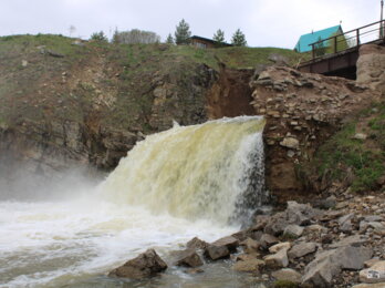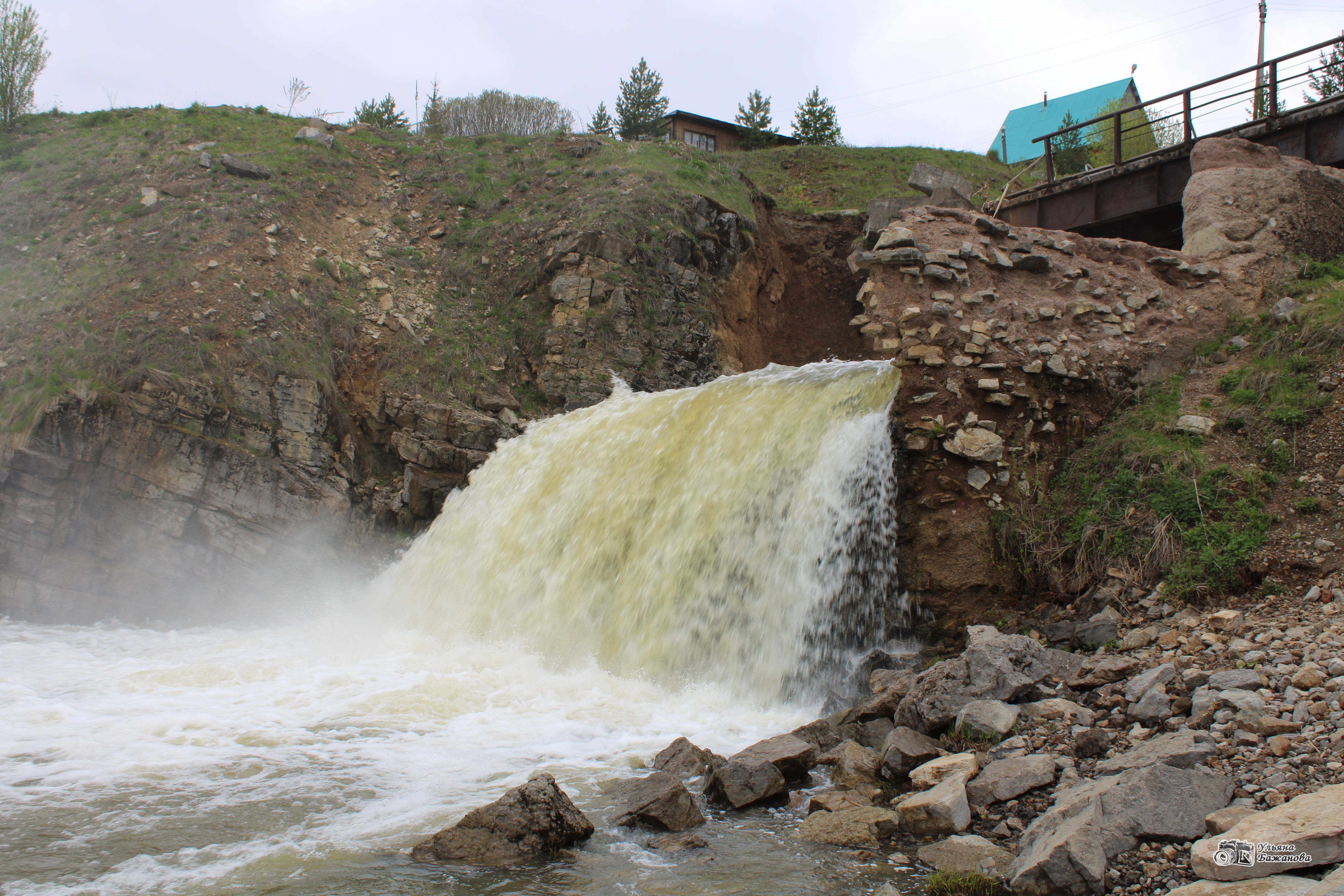 В конце дороги на развилке сверните налево. Справа откроется вид на Койву. Будет видно подвесной мост. Вот уже и одна из локаций, показанная в сериале. Дальше выходите из машины и идете вдоль берега метров 200 к Кусьинскому водопаду. На самом деле это старая плотина – наследие работы прииска «Уралалмаз», который был здесь в 50-ых годах прошлого века.