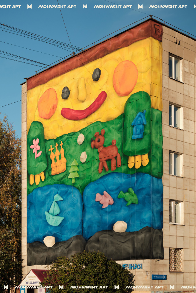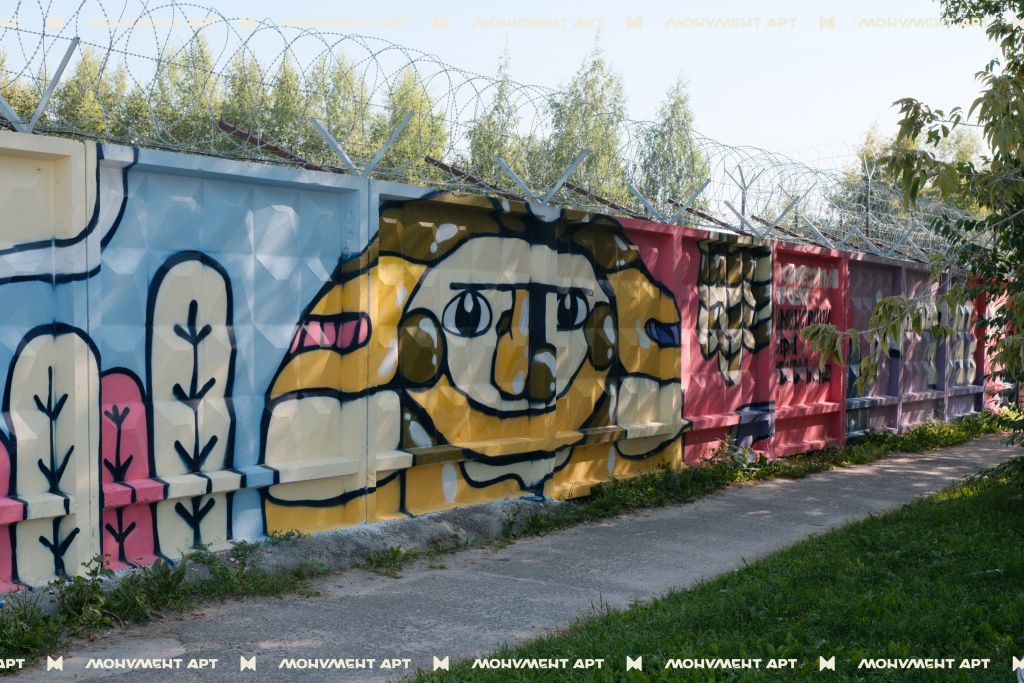 И третья работа появилась 12-13 июля, когда в Перми прошел детский фестиваль «МОНУМЕНТ АРТ дети», на котором жители города вместе с художниками раскрасили 260-метровый забор по адресу ул. Степана Разина, 28. Мероприятие собрало около 100 участников и объединило всех, кто хотел внести свой вклад в создание яркого арт-объекта.