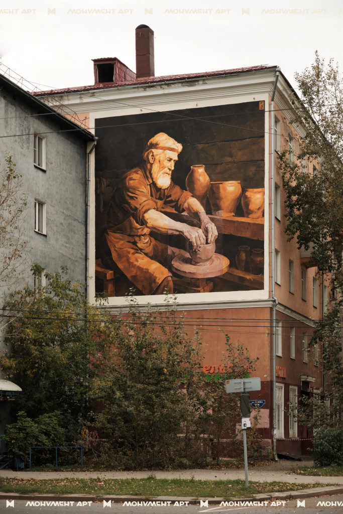 Работа посвящена традициям кунгурской керамики, а также мастерству других ремесленников Пермского края. Художник исполнил работу в его фирменном стиле – живописи.