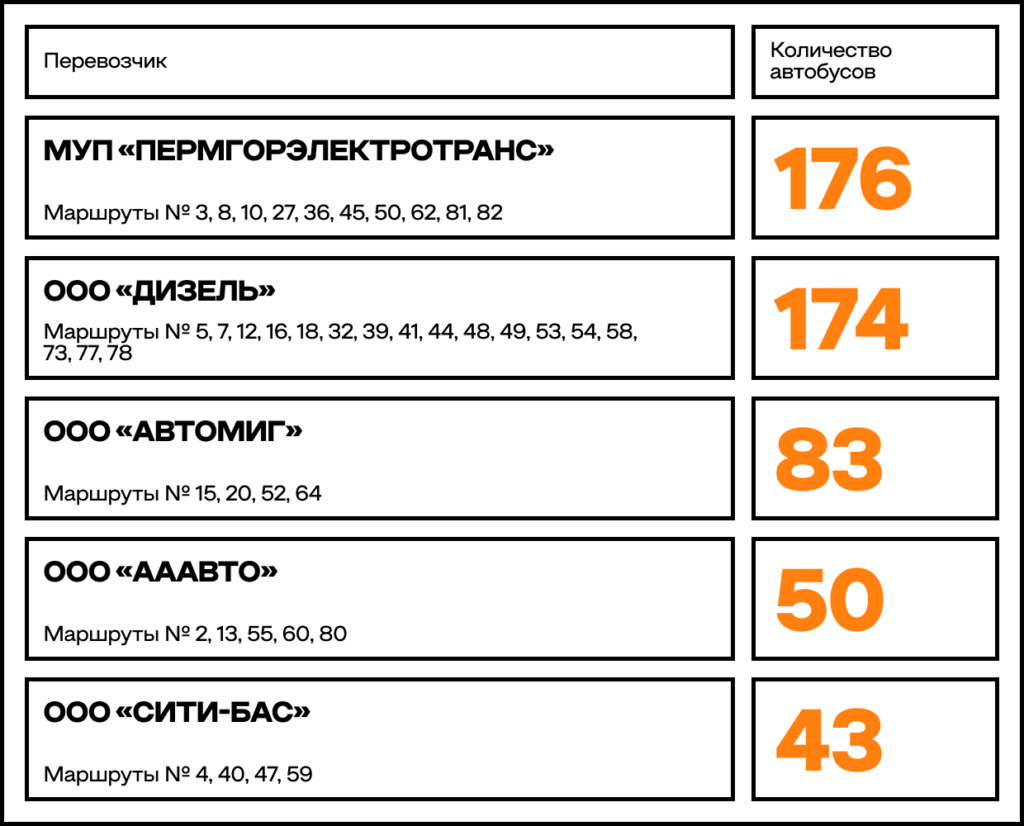 ТОП-5 перевозчиков Перми по объему подвижного состава (данные на октябрь 2025 года)