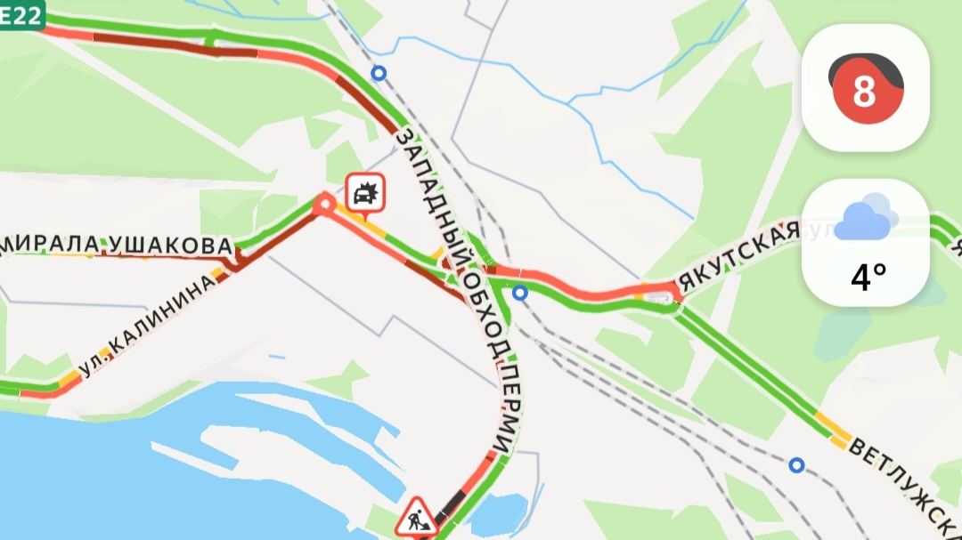 Ситуация с заездом в Пермь с другой стороны Камы осложняется еще одной аварий уже на Коммунальном мосту. Со стороны обоих подъездов скапливаются пробки и по другим улицам. По данным сервиса, на данный момент пробки в городе составляют 8 баллов.