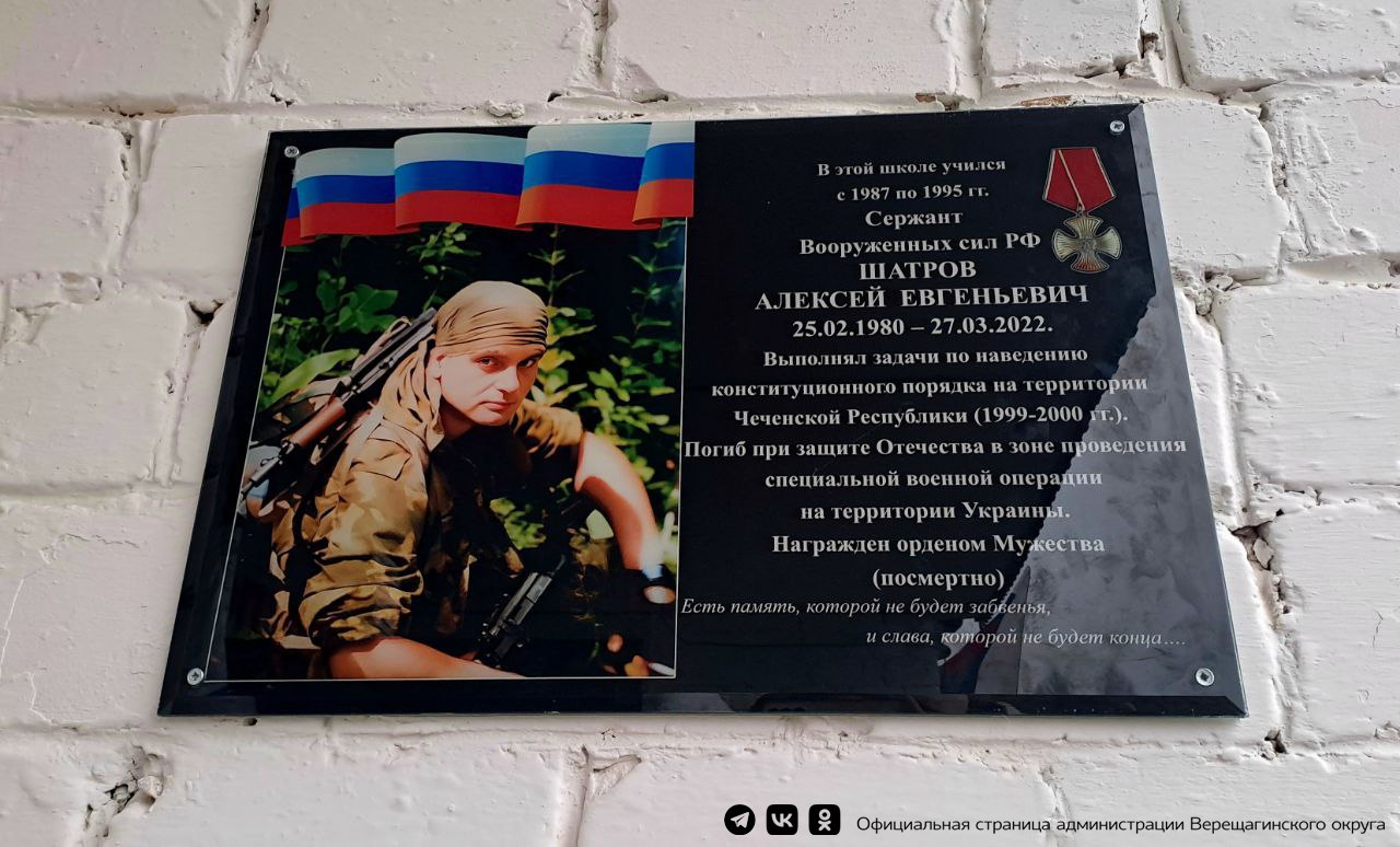 В Верещагинском муниципальном округе появилась мемориальная доска в честь Алексея Шатрова, погибшего в ходе специальной военной операции. поддержку семьям участников СВО.