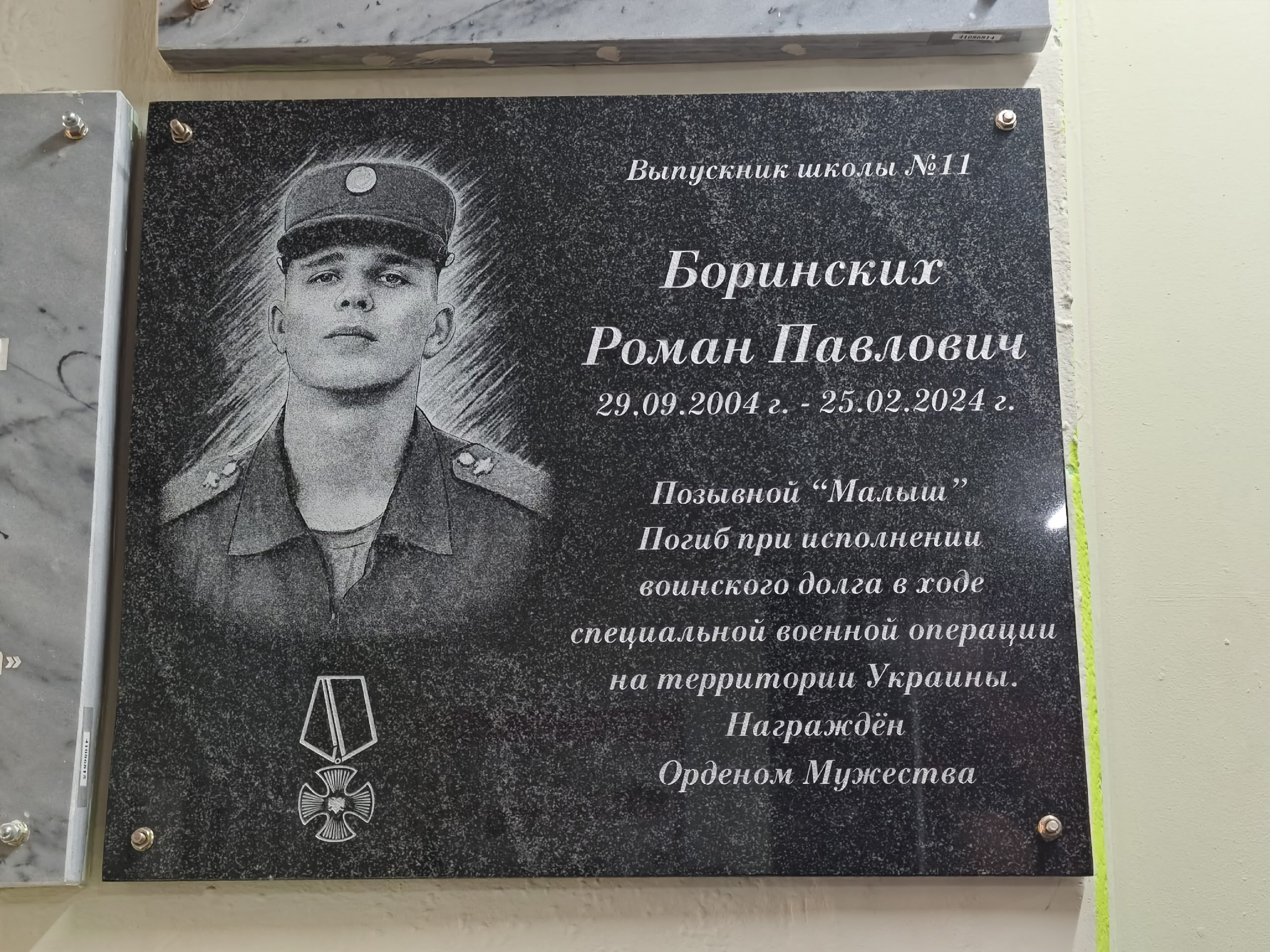 В березниковскрй школе № 11 появилась мемориальная доска в честь ее выпускника Романа Боринских, погибшего при исполнении воинского долга в ходе специальной военной операции.