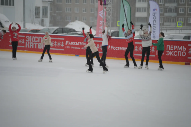 Днем 8 января возле Экспо-центра в Перми на «Экспо-катке» состоялись мастер-классы в рамках Всероссийского дня фигурного катания.