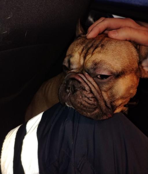У собаки был ухоженный вид и ошейник, было видно, что собака домашняя и, вероятно, потерялась. Полицейские согрели бульдога в салоне патрульного автомобиля и решили отвезти его в приют для бездомных животных.